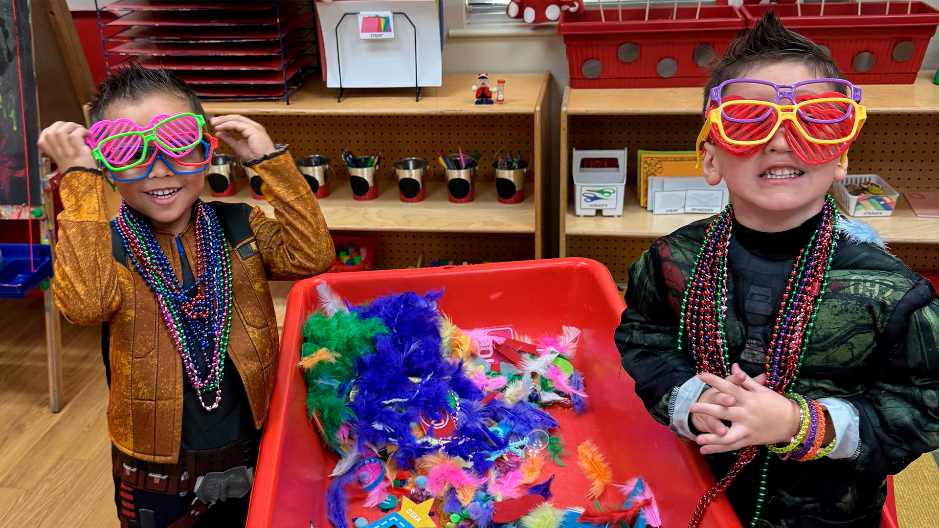 During class, children experience creative free play, story time, snack time, art, learning centers, enrichment (motor skills, music), playground, chapel time, and lunch!