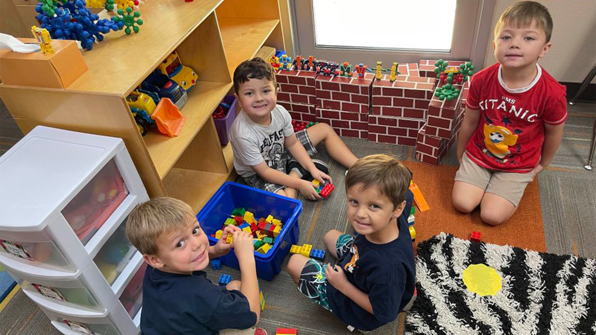 During class, children experience creative free play, story time, snack time, art, learning centers, enrichment (motor skills, music), playground, chapel time, and lunch!