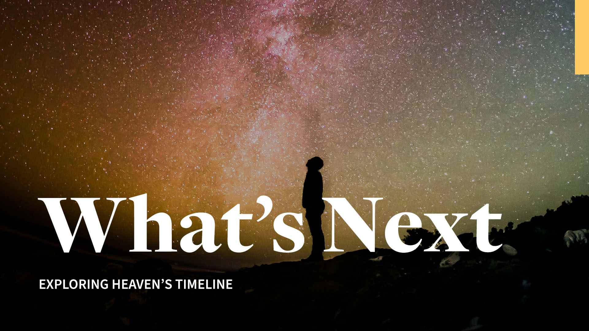 These are days of wars, pandemics, and plagues. Morality is off the rails. Anything goes and nothing is off-limits. God’s prescription for this chaos? Ponder what he has planned for his children. “Think about the things of heaven, not the things of earth” (Col. 3:2 NLT). Knowing what is coming next empowers us to face what is happening now. In our “What’s Next” sermon series, we will explore the milestone moments on heaven’s timeline and learn to face the future with faith.