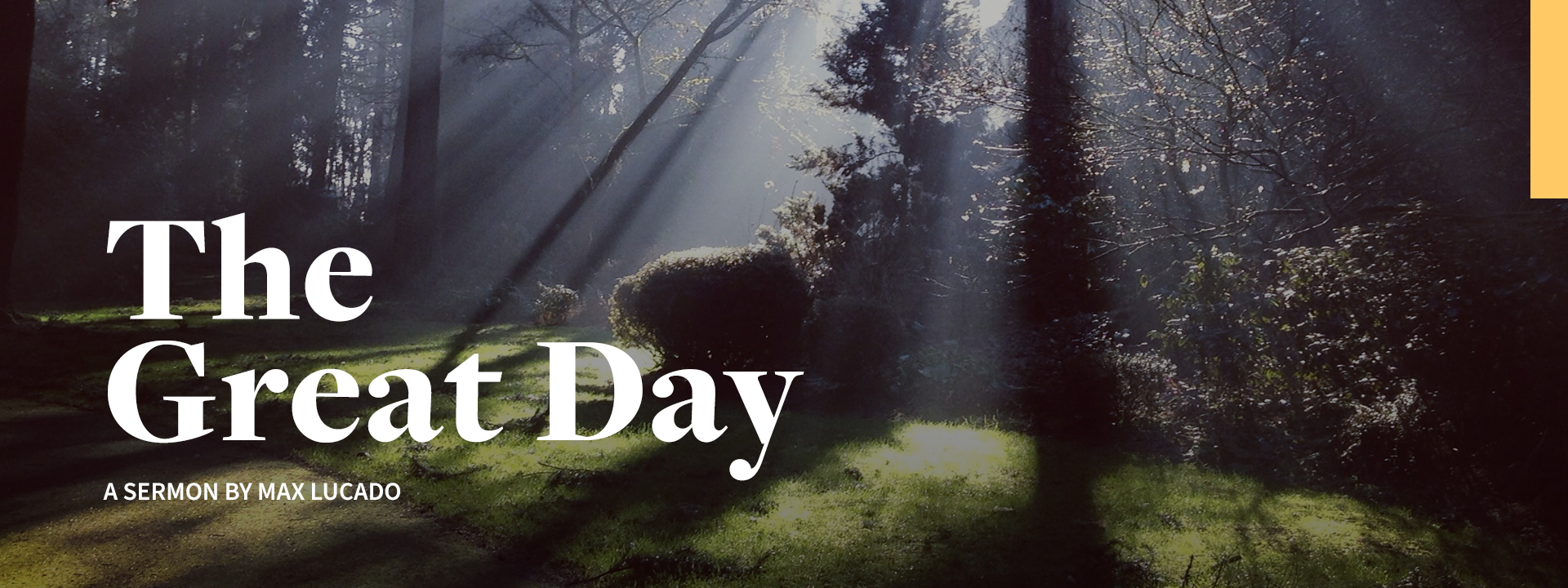 Videos Study Tools Details Recommended The Great Day WEEK 1 Share this Sermon Share Share this Sermon Copy Link Study Guide Use your Bible and the weekly study sheets to engage in spiritual practices that help us hear from God. There are currently no study guides available. Sermon Notes Use the weekly sermon notes to follow along with each week's message. Week 1 PDF Small Groups Life was not meant to be lived alone! Check out our Groups page for more info! Join A Group Sermon Podcast You can watch or listen to our sermons on your mobile device via our podcasts! How cool?! Rightnow Media For more resources for you or your family, we have access to Rightnow Media’s online library! It’s completely FREE! Visit Rightnow Media About the Series - The Great Day A sermon featuring Max Lucado There are currently no recommended items.