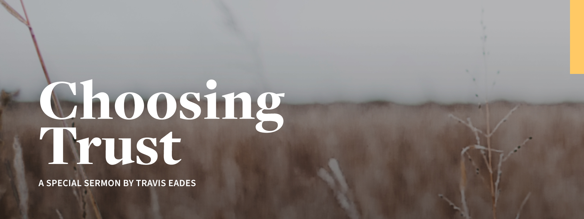 Videos Study Tools Details Recommended Choosing Trust WEEK 1 Share this Sermon Share Share this Sermon Copy Link Study Guide Use your Bible and the weekly study sheets to engage in spiritual practices that help us hear from God. There are currently no study guides available. Sermon Notes Use the weekly sermon notes to follow along with each week's message. Week 1 PDF Small Groups Life was not meant to be lived alone! Check out our Groups page for more info! Join A Group Sermon Podcast You can watch or listen to our sermons on your mobile device via our podcasts! How cool?! Rightnow Media For more resources for you or your family, we have access to Rightnow Media’s online library! It’s completely FREE! Visit Rightnow Media About the Series - Choosing Trust A special service featuring Travis Eades There are currently no recommended items.