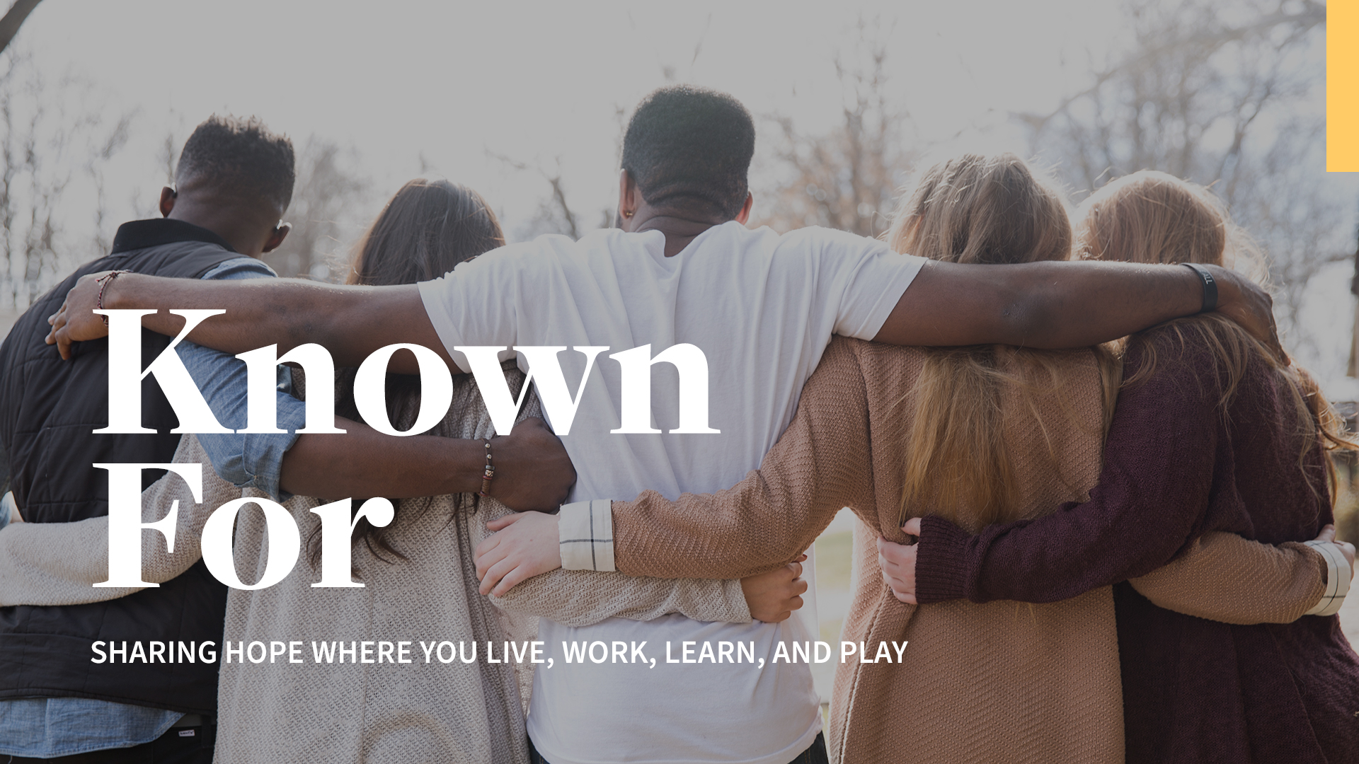 Videos Study Tools Details Recommended Sharing Hope WEEK 1 Share this Sermon Share Share this Sermon Copy Link Following Jesus Moment by Moment WEEK 2 Share this Sermon Share Share this Sermon Copy Link Making Disciples WEEK 3 Share this Sermon Share Share this Sermon Copy Link Living in Biblical Community WEEK 4 Share this Sermon Share Share this Sermon Copy Link Study Guide Use your Bible and the weekly study sheets to engage in spiritual practices that help us hear from God. Download Sermon Notes Use the weekly sermon notes to follow along with each week's message. Week 1 PDF Week 2 PDF Week 3 PDF Week 4 PDF Small Groups Life was not meant to be lived alone! Check out our Groups page for more info! Join A Group Sermon Podcast You can watch or listen to our sermons on your mobile device via our podcasts! How cool?! Rightnow Media For more resources for you or your family, we have access to Rightnow Media’s online library! It’s completely FREE! Visit Rightnow Media About the Series - Known For What if Oak Hills Church decided to close its doors tomorrow? Would our community ask us to reconsider? Would they even notice? For far too long the Church has been known for what we’re against. It’s time to be known for what we are for. We are FOR making disciples, following Jesus, sharing hope, and living in biblical community. We are FOR the people where we live, work, learn, and play - because God is FOR them. For God so loved the world that he sent Jesus who gave his life for us. In this four-week series, we’ll ask the question: What are we known for? What do we want to be known for? Will you help us show our community that we are FOR them because God is FOR them? There are currently no recommended items.