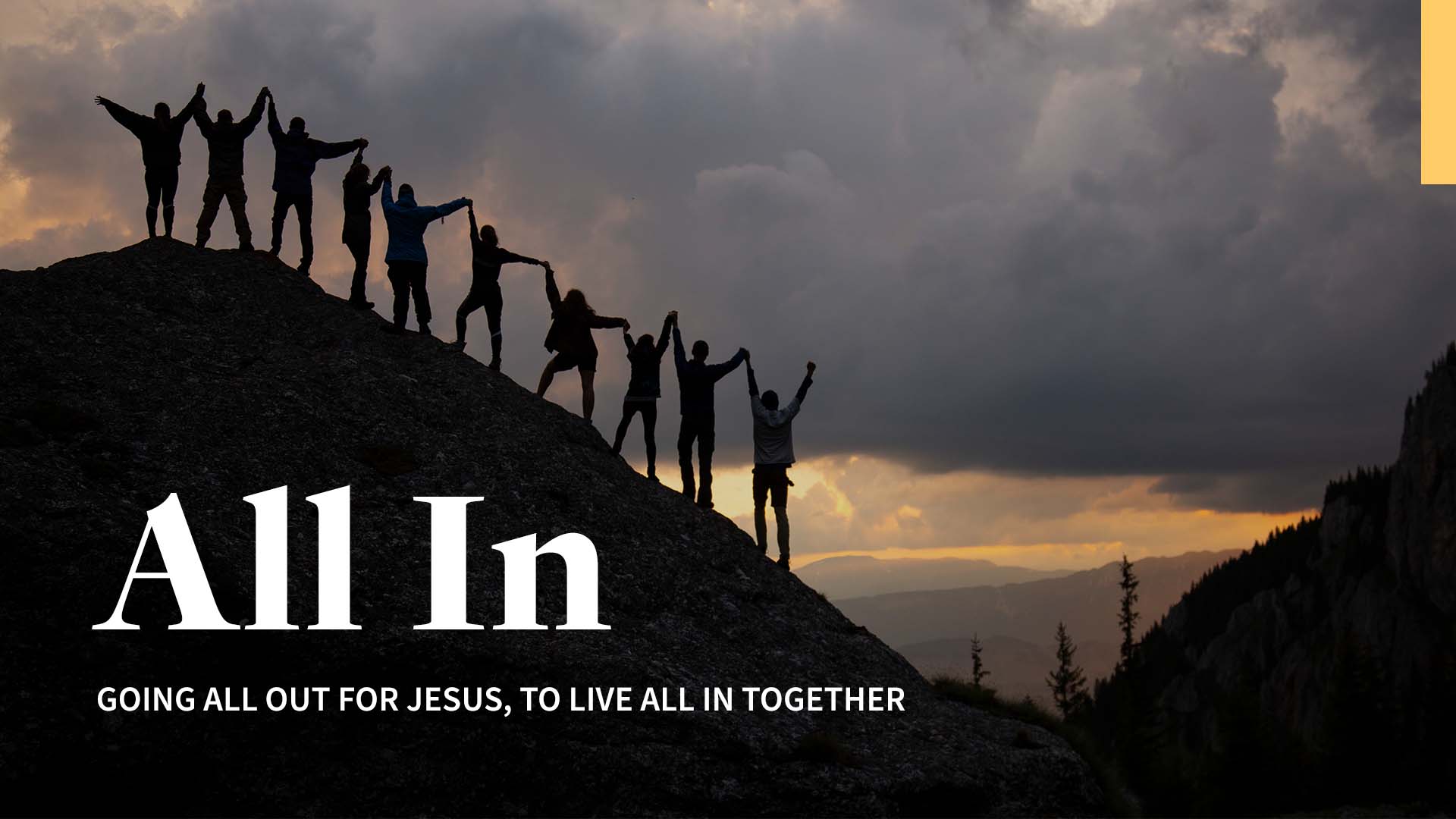 Videos Study Tools Details Recommended All In for Family WEEK 1 Share this Sermon Share Share this Sermon Copy Link All In for Discipleship WEEK 2 Share this Sermon Share Share this Sermon Copy Link All In for Worshipping Together WEEK 3 Share this Sermon Share Share this Sermon Copy Link All In for Spiritual Practices WEEK 4 Share this Sermon Share Share this Sermon Copy Link All In for Biblical Community WEEK 5 Share this Sermon Share Share this Sermon Copy Link All In for Serving Others WEEK 6 Share this Sermon Share Share this Sermon Copy Link God's Grand Invitation WEEK 7 Share this Sermon Share Share this Sermon Copy Link Study Guide Use your Bible and the weekly study sheets to engage in spiritual practices that help us hear from God. Download Sermon Notes Use the weekly sermon notes to follow along with each week's message. Week 1 PDF Week 2 PDF Week 4 PDF Week 6 PDF Week 7 PDF Small Groups Life was not meant to be lived alone! Check out our Groups page for more info! Join A Group Sermon Podcast You can watch or listen to our sermons on your mobile device via our podcasts! How cool?! Rightnow Media For more resources for you or your family, we have access to Rightnow Media’s online library! It’s completely FREE! Visit Rightnow Media About the Series - All In: Going all out for Jesus, to live all in together Our world is marked by increasing isolation and division. Many of us feel estranged from anything normal - including church. More than any other time in our history it is important for followers of Jesus to find our identity in Christ and for the local church to live our role in God’s kingdom Church. Jesus never intended for his disciples to live an isolated, solitary lifestyle. Following Jesus is more like a team sport than an individual sport. When we join in the mission of Jesus, together, we experience the power of God’s unique community – the church. This study series, All In, is an invitation for the disciple to go all out in following Jesus, so that each of us can live all in through our relationships within the local church. We envision this series providing opportunities for our church to receive a renewed understanding of what it means to be a disciple of Jesus. We can’t wait to discover together who we are as disciples and define a modern disciple’s relationship with the local church. Let’s go all out for Jesus, so we can live all in together! There are currently no recommended items.
